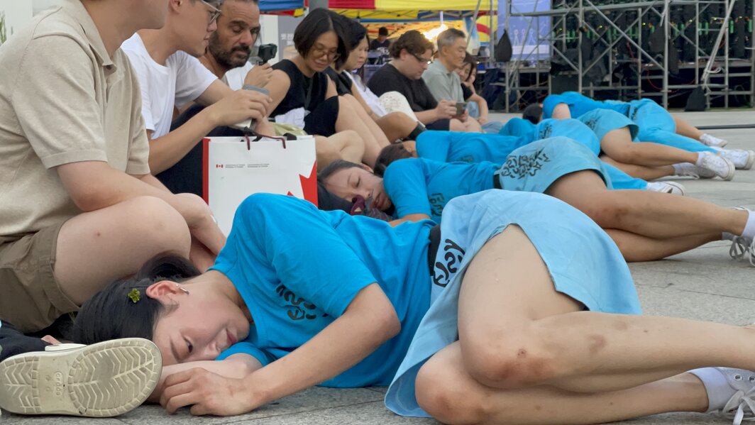 依依不舍告别ACC,在赶往Miro Center的路上,和策展人王欢偶遇了艺术团体Public Movement正在彩排的行为表演《DEMO》。我们俩鬼使神差地跟着表演者们走了一路,一直到5.18广场看完了整场彩排。表演是与朝鲜大学的学生舞者合作,表现光州精神的历程,融合了街头活报剧和现代舞,最后一幕还有与观众的互动。此时主展馆开幕式传来前方报道,说有男团到场,同时大雨倾盆,感觉还是我们所在的位置内容比较精彩。