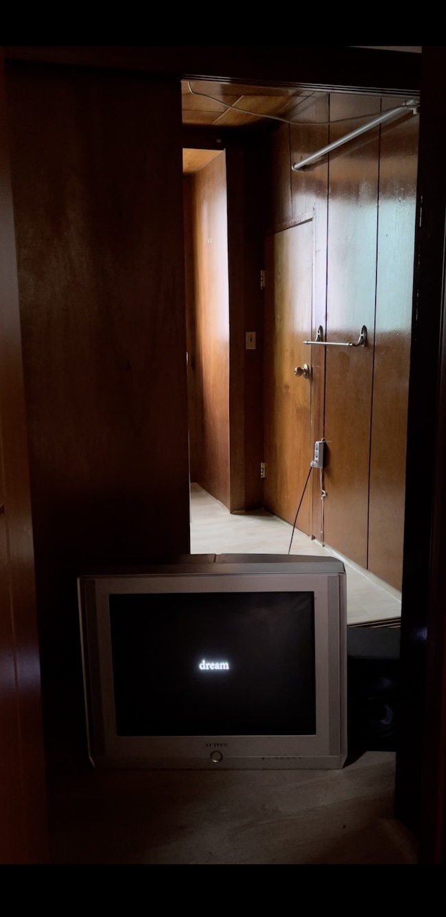 抵达杨林洞时已经是傍晚,这里依照双年展的主题,将国家馆和特展散落在不同的城市空间,包括咖啡馆、公园、纪念馆等。在一栋被命名为Empty House的破败废弃的民宅里,我终于听到了真正的韩语Pansori。原来这里才是Mira Mann作品的主要展示场地。狭窄的屋子里,梳妆镜如随意门,老式电视摆在地上,播送着空洞又铿锵的唱诵。此刻人去楼空,却胜过万语千言。