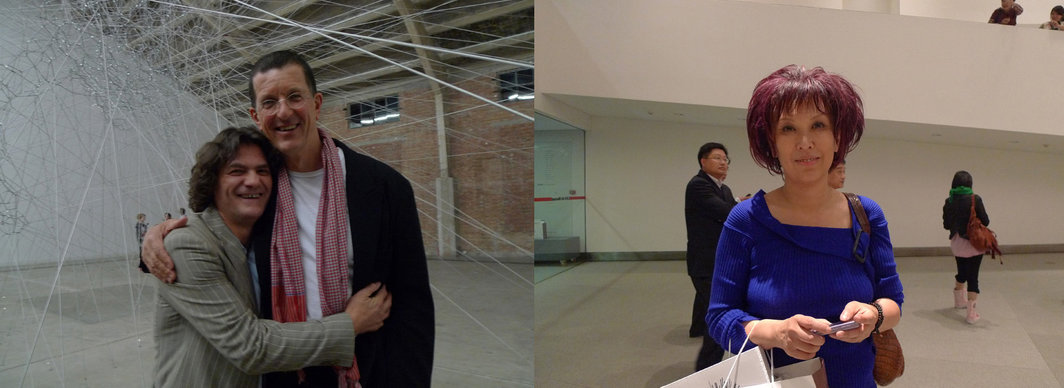 10日下午开幕的安东尼•葛姆雷个展,占据常青画廊主展厅的《另一个奇异》这件作品,乍一看,和艺术家Tomas Saraceno目前正在2009年威尼斯双年展展出的作品形式上有着惊人的相似,都是使用大量放射型线条连接建筑的墙面,以一种奇异的几何模式重新划分了空间。你必须沿着两位艺术家的发展简史追溯回去,才能辨别出他们各自研究的课题并不一样。原来,方案“撞车”这件事在大师身上也是难以幸免的,只不过是口水的汹涌程度有所区别而已。