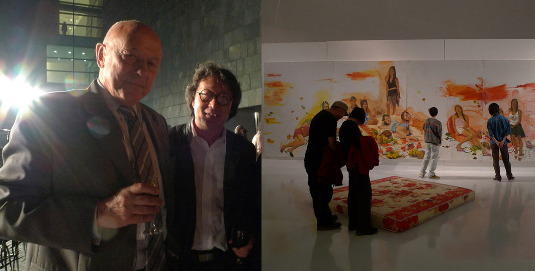 远道而来参加本届“全球艺术品收藏论坛”的嘉宾和业内人士齐集露天酒会,雪亮射灯、打在美术馆外墙的投影,使央美美术馆在这夜焕发光彩。未经证实的流言说:“这次的大部分展品是从全球收藏中国当代艺术排名前十六位的藏家手上借来的,而这十六位里面,居然没有萨奇!”除了大厅的那件黄永砯大型装置作品标明“由管艺当代艺术馆收藏”之外,其余展品都显得很低调,也有小部分是艺术家提供的新作品。