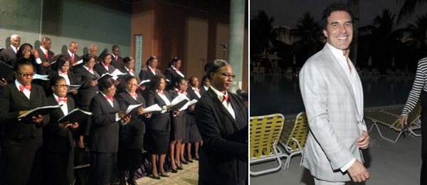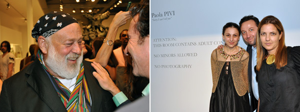 我们又来到了北面8英里之外的迈阿密当代美术馆参加Jonathan Meese和Bruce Weber的开幕式。暮色降临,美术馆正门上灯光打出的Logo是:浮华世界。我们走过了海地歌手合唱团和停在那里的cheeseme.com的卡车(赈济难民油腻的三明治和奶酪汉堡的机构),然后突然暴露在了狗仔队的闪光灯海中。