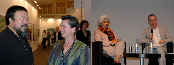 发布会上,觥筹交错,照相机闪来闪去,博览会的负责人约翰·马丁(伦敦画廊家)和 Savita Apte(艺术史学者,苏富比顾问)坐下来,就座的还有发言人Frederic Sicre, 私人股权公司Abraaj Capital的执行总监,他们也是这场博览会的协办者。接下来就是一场销售的硬仗。艺术家变成了企业家。博览会成为“西方与东方”连接的通道。Sicre谈到了他的公司对中东、北非、南亚艺术的浓厚兴趣。他说:“西方经济看来正在经历一些困难,此时新兴市场的出现,正是时代所需。”