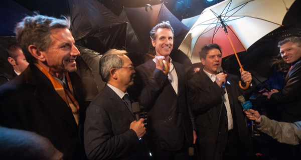 本•达维斯(Ben Davis)是一个外表俊朗的社交高手,是大桥项目的幕后策划,他发表了演讲,不时称赞项目背后的集体协作精神。他说房间内的这些人,“极为慷慨。”考虑到《海湾照耀》的背后支持,他向官方合作机构如加州交通部门和大桥收费站表达了谢意。掌声四起。