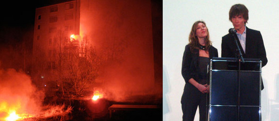穿过 Skulpturenpark ,从前的东德西德边界上,是一片片的空地,现在那里堆积着废物垃圾,我不禁问自己:“这究竟是艺术品还是一个废弃的自行车?”(也许都是吧——Sofia Hultén丢弃的一件艺术品 Auflösung, 2007,去年扔在了这里。)如果从垃圾堆里分辨不出这些艺术品,人们可以从 Lars Laumann的电影 Berlinmuren(2008)中看出端倪。这个短篇纪录片,在残骸中的一个小木舍里放映,讲述的是一个瑞典女人在 1979年嫁给了“柏林墙”。(由于感情而非政治原因,在她的丈夫‘柏林墙’后来被推倒后,完全崩溃。)在 Neue Nationalgalerie,我被 Melvin Moti的 ESP, 2007所迷惑,这是一个由超慢镜头组成的电影,由一个可以在梦中可以预知未来的人来叙述。从Moti的空想中出来,我发现没什么能让我感到吃惊了,即使是 Susanne Winterling的装置作品--在那里,博物馆的两个存衣间都是空的,完全变成了小的展览场所,而参观者的物品被挂在 Gabriel Kuri的明亮的黄色金属雕塑上。为什么衣服要挂在雕塑上,而存衣间却装上了图片呢?