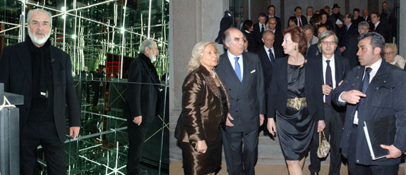 在Largo Isarco的阁楼间,是Celant和 Bertelli研讨会。Koolhaas认为他的设计涉及了“规模的抽象转换”,最后补充,“我们要能和致力于这种转换的艺术家一起工作。”Celant强调了在展览中展示文化的重要性和将策划与建筑结合起来的必要性。Prada和她儿子Francesco在第二排安静地看着, 欣赏着口才极佳而又非常认真的Bertelli,而 Vogue的 Hamish Bowles,却有些不忿地直视着他。
