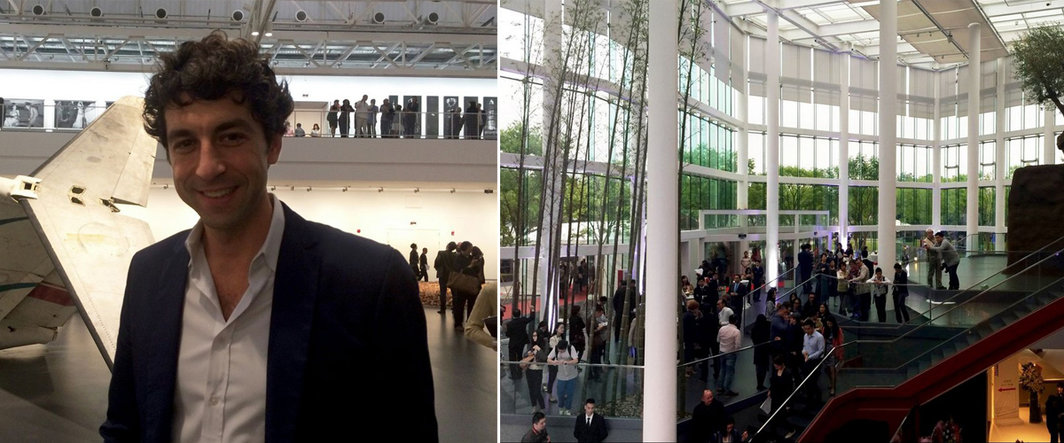 距开幕还有一个多小时,由藤本壮介(Sou Fujimoto)设计的余德耀美术馆(The Yuz Museum)大厅已略显拥挤,好在建筑上下错层丰富,每位等待的观众都找到了合适的一角围观即将发生的一切。入口前方平台莫瑞吉奥-卡特兰(Maurizio Cattelan)的橄榄树附正方体泥土底座成为大厅最高点,曾担任洛杉矶当代艺术博物馆(MOCA)馆长的杰弗里杰弗瑞•戴奇(Jeffrey Deitch)公开表示非营利性质的博物馆面对私立收藏机构的各项有利条件倍感压力,他提到余德耀为收藏卡特兰的橄榄树承诺建立专门的玻璃暖房,并也因此可以与画商讨价还价。