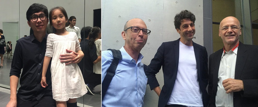 “我在纽约呆了十年,回上海没怎么参加过这里的活动。今天被朋友拉来,没想到这边的开幕人这么多这么热闹”,摄影师廖逸君说。两个星期前上海的三个艺博会和数不清的大小展览开幕还没让“走断腿”的人们缓过神来,紧接着月底龙美术馆的“15个房间”展便以玛丽娜·阿布拉莫维奇(Marina Abramović)、小野洋子、布鲁斯·瑙曼(Bruce Nauman)等响当当的大牌艺术家挑逗着人们的眼球,把关注再次拉回到上海。尽管最终十位外国参展艺术家无一现身,仅仅遥“寄”来了作品,阿布拉莫维奇也只通过一条短片露了个面(颇似未能出席颁奖典礼的明星和粉丝打招呼的方式),但两位策展人——MoMA PS1馆长兼首席策展人克劳斯·比森巴赫(Klaus Biesenbach)和月初刚刚获得2015年国际弗柯望奖(International Folkwang Prize)的蛇形画廊联合总监汉斯·乌尔里希·奥布里斯特(Hans Ulrich Obrist)——的现身,还是在麦克不给力谁也听不清他们在台上到底说了些什么的情况下,成功Hold住了在美术馆门口站足了一个小时开幕礼的人群,为中秋和国庆假期前的周五夜晚注入了一剂强力兴奋剂。