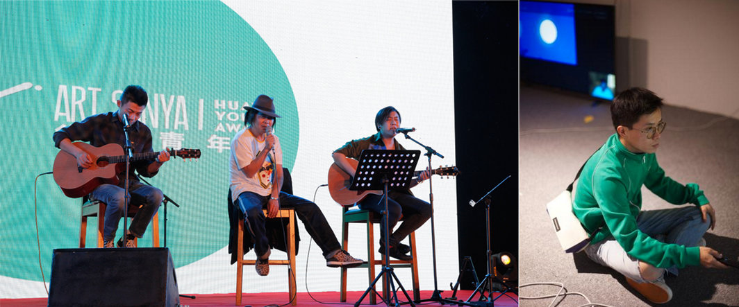 最紧张的一刻当然是颁奖前。尽管左小祖咒在晚宴表演期间发布了类似“青年人在搞艺术的同时容易被艺术搞”的言论,从客观上调节了气氛,但人们嘴上谈的、心里想的还是大奖花落谁家。跟笔者同坐媒体席的几位,不然满场飞来飞去寻找报道资源,白白地浪费了眼前的精致食物,要不就索性就在名牌前坐稳,在信息最为密集的餐桌就地取材,向同行打听(小道)消息:终选评委(皮力、凯伦·史密斯、田霏宇、徐累、张培力)对王思顺和苗颖的争论啦,本届奖项重点不在于“推陈出新”而在于“价值观”与“复杂性”啦,真真假假,不一而足。今年的三亚没有出现传说中喝高了之后抱头痛哭或满地打滚的盛景,但相比从前,华宇青年艺术奖似乎愈发能调动艺术系统的喜怒哀乐(听说江湖中已有人为此开盘下注)。于是,回过头看皮老师在一开头展露的风趣幽默,水平之高,很值得青年一代慢慢品味。