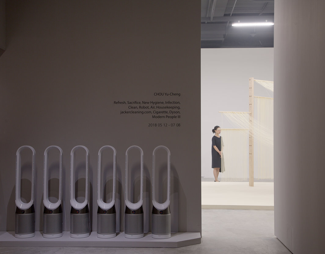 自去年底起陆续在上海的马凌画廊和香港巴塞尔艺博会发表的“刷新、牺牲、新卫生”系列第三阶段“刷新,牺牲、新卫生、传染、清新、机器人、空气、家政、洁客帮、香烟、戴森、现代人。三”目前正在台北TKG+画廊展出,展览将持续至2018年7月8日。