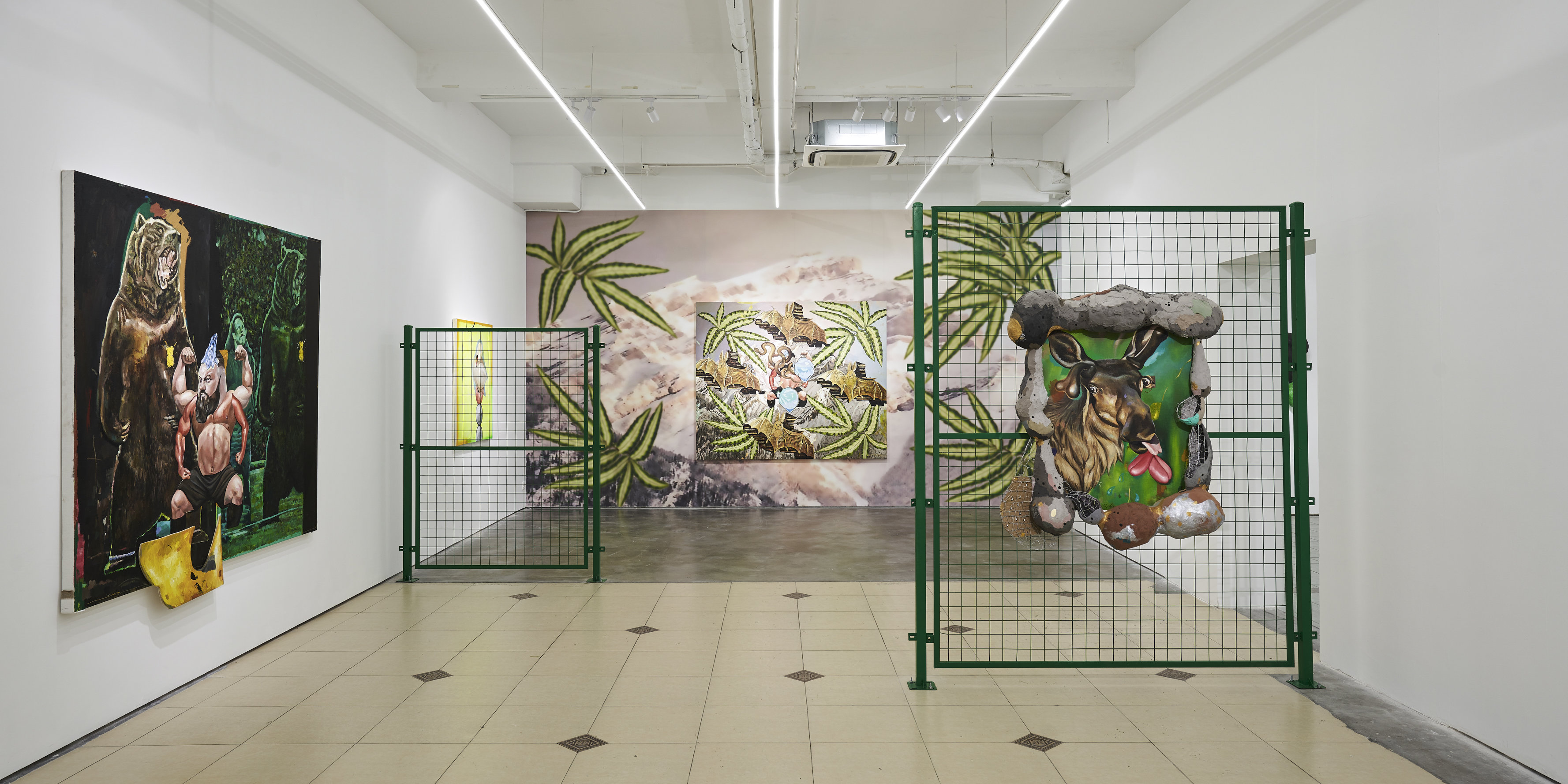 活跃于80年代的东北当代艺术家在作品中探求精神性、崇高、绝对理性,而出生于80年代、如今仍居住在东北的艺术家时常在创作中透露戏谑、轻盈和幽默感——耿旖旎的实践为一例。不同年代的创作映射出东北这几十年经历的剧变以及这种变化对人的塑造,两代人的绘画所凝聚的特质看似相反,但其中延续不变的,是艺术家面对严酷环境既逃避又依赖的矛盾心境。“虚拟力量”是耿旖旎在上海的第三次个展,此次展出的绘画中满溢着各种动物的形象、孜孜不倦展示强壮身体的大力士、异域风光和陌生地貌、让人忍俊不禁的画中字……本文中艺术家讲述了她对“力量”和“虚拟”的强烈兴趣,也提及造成代际差异的原因。“虚拟力量”将于BANK持续至2020年7月12日。