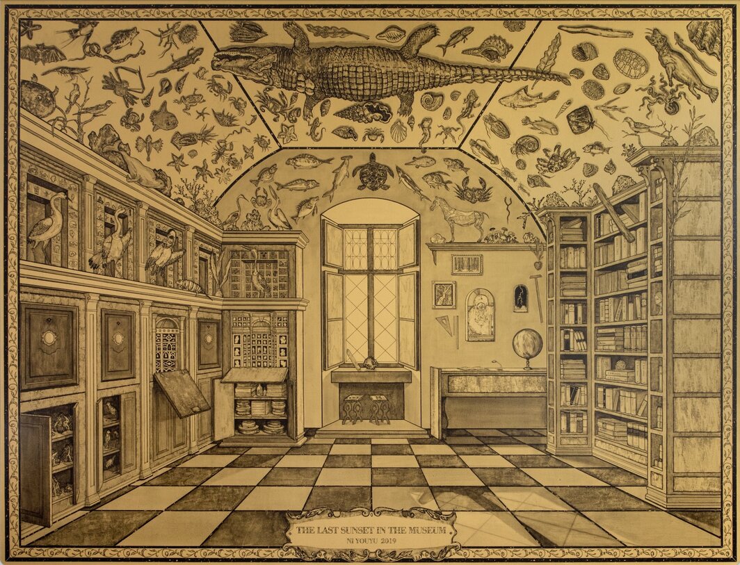 我也在很多画中“暗藏私货”。比如我在根据多米尼克·兰普斯(Domenico Remps)原画再创作的《博物馆的余晖》(2018-19)中,就把原本画中书籍的名字改成了我的个展和出版物的名字,把自己的一些“私货”藏在里面。无论画的尺寸是三十厘米还是三米,我都想往里面注入很多东西。有时候这些画也是具有欺骗性的,观众看到的和我想要表达的是两回事。比如这次展览里面二楼的《微芒3》(2022)是在一个很暗的小房间里面呈现的,画面上是一个黑乎乎的卧室,很多观众都会错过这件作品。这也是一件难以拍摄的作品,它更像是在古代没有社交媒体的时候,人们看作品都得看原作,甚至需要举着蜡烛去看。我们今天的生活都依赖于社交媒体,而这幅画再怎么拍摄都和原画的差异很大,可以说它是一件逆时代的作品。它脱离了社交媒体,好像变成了传说中的一幅画,因为它没办法在社交媒体上被再现和传播,这是我觉得有意思的地方。