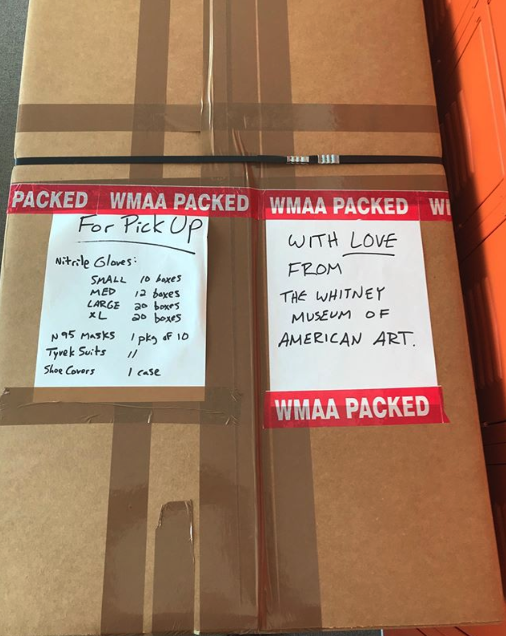 布鲁克林美术馆、卓纳画廊、弗里克收藏、大都会艺术博物馆、摩根图书馆与博物馆以及惠特尼美国艺术博物馆等机构已将超过两万多副手套、数百个口罩、防护靴和其他艺术工作者常用的物防护资送到纽约的医疗人员手中。