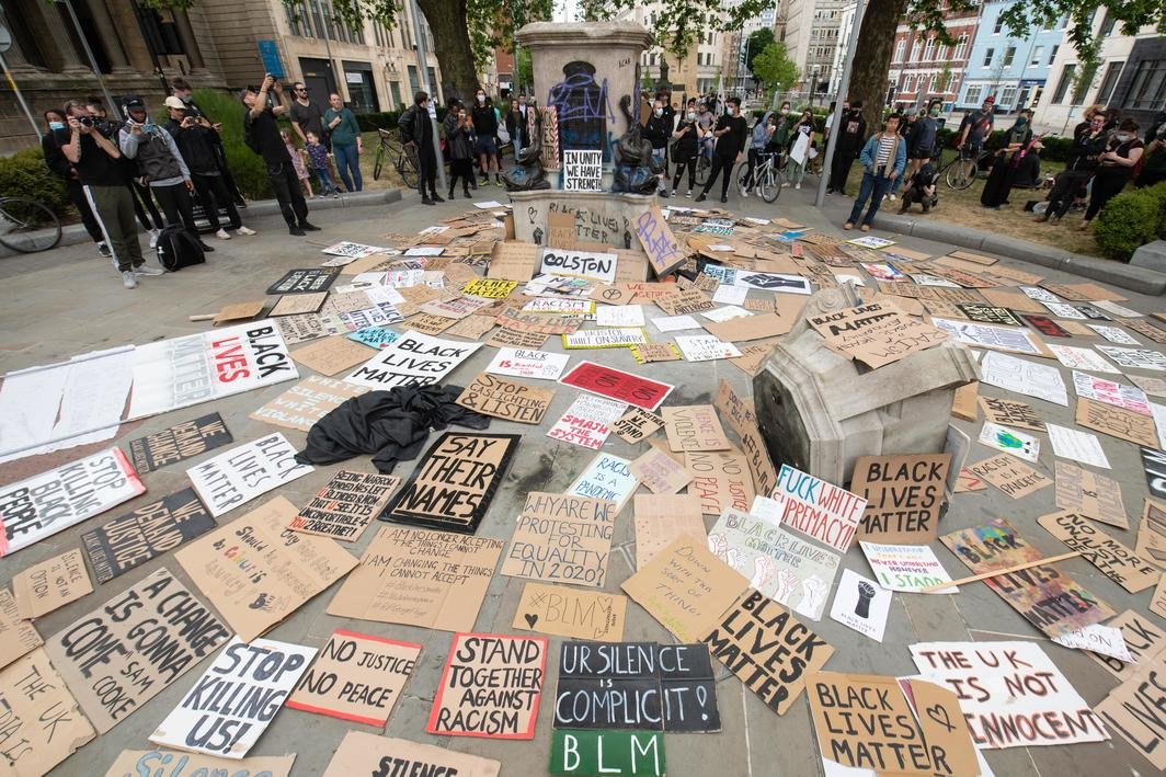 在英国布里斯托,一座已矗立125年、高18英尺的十七世纪奴隶贩运者爱德华·科尔斯顿(Edward Colston)的雕像于本周日被一群抗议种族不公的示威者推倒,并扔进布里斯托港。受全美各地移除邦联时期纪念碑行动的鼓舞,英国等地的示威者也开始推倒有争议的历史人物雕像。