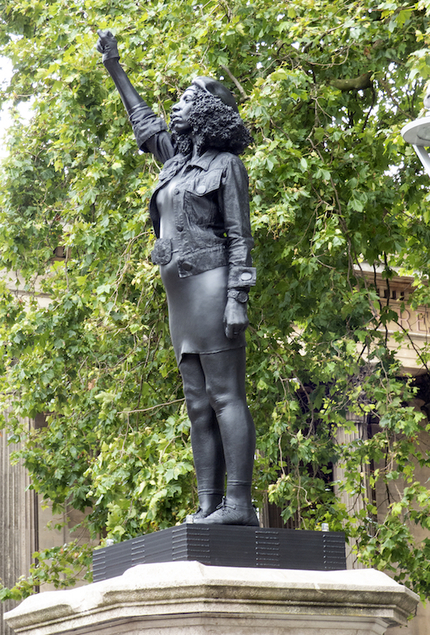 7月15日凌晨,由英国艺术家马克·奎恩(Marc Quinn)带领的十人团队在英国布里斯托安装了一尊“黑人命也是命”行动者詹·里德(Jen Reid)的雕像,而雕像基座上原本摆放的是上个月被示威者推倒并扔进海港的17世纪奴隶贩子爱德华·科尔斯顿(Edward Colston)的雕像。