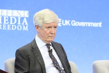 2019年伦敦全球媒体自由大会上的托尼·霍尔. 图片:Foreign, Commonwealth & Development Office/Flickr.