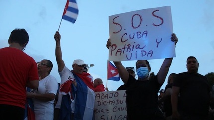 “我在这里是因为饥饿,因为没有药品,因为断电——因为什么都缺。我想要彻底的改变。”人群聚集在公共纪念碑和政府大楼前,高呼“祖国与生命”(Patria y vida,Homeland and life),这句话来自古巴共产主义革命家切·格瓦拉在20世纪50年代呼喊的“祖国或死亡”(Patria o muerte,Homeland or death)。在美国,古巴裔美国人涌入迈阿密的街道和港口,声援哈瓦那的抗议者,要求美国总统拜登承认这场危机,并呼吁迪亚斯-卡内尔“倾听人民的声音,满足他们的需求”。