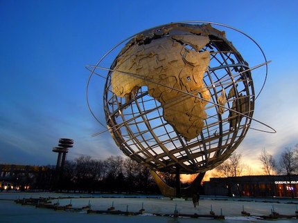 获资助机构之一的皇后美术馆前的大地球仪. 图片:Sam/Wikipedia Commons.