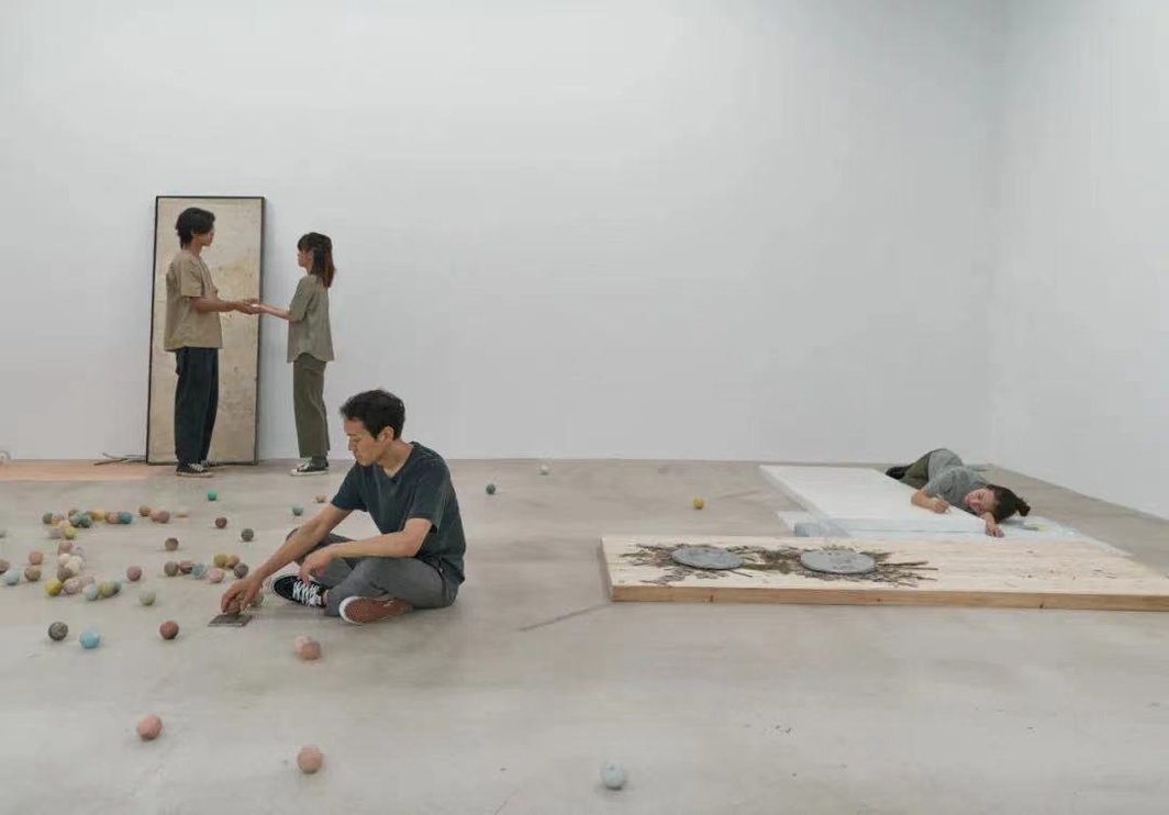 范尼·吉奎尔,“现在,随后”,2022,展览现场. 表演者:廖书艺、钱丹、蔡司晗、原田僚太郎. 图片:画廊周北京.