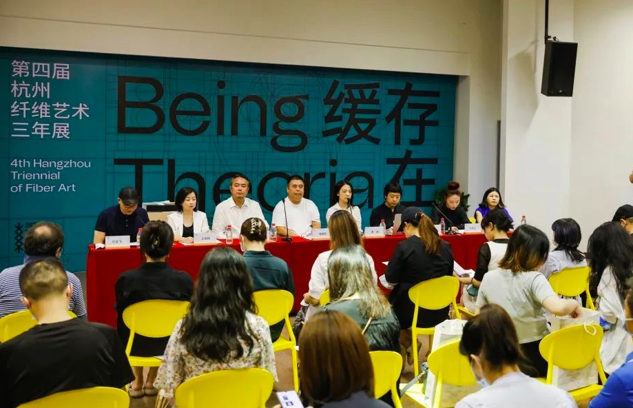 “缓存在/Being Theoria——2022年第四届杭州纤维艺术三年展”新闻发布会现场. 图片:纤维艺术三年展.