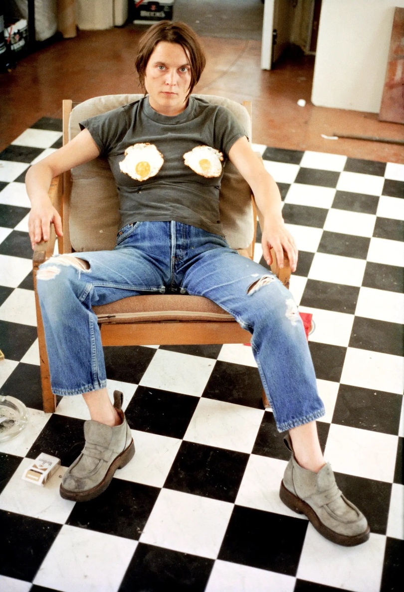 莎拉·卢卡斯,《自拍与煎蛋》(Self-Portrait With Fried Eggs),1996.