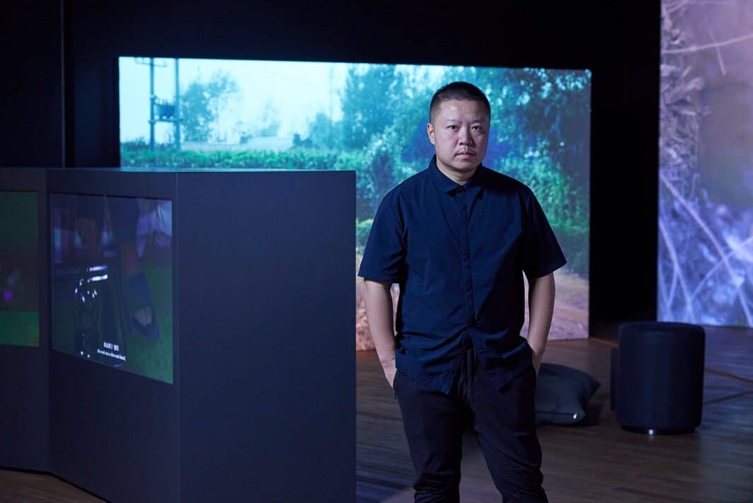 王拓及其作品于“希克奖2023“展览现场. 图片:梁誉聪/M+.