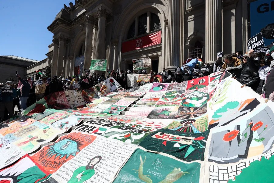 巴勒斯坦支持者以巨型拼布占领大都会博物馆台阶