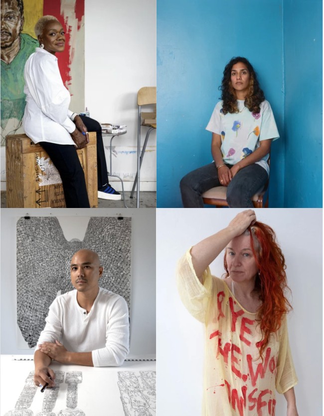 出生于马尼拉的阿巴德因其在牛津阿什莫林博物馆的展览“致那些坐在黑暗中的人”(To Those Sitting in Darkness)获得提名,展览标题指涉马克·吐温的一首批判美国在菲律宾的帝国主义的诗。评委认为该展览“向博物馆发问”,其核心是殖民主义问题,包括围绕1897年被英国士兵掠夺的贝宁青铜器相关问题。约翰逊是曼彻斯特人,以其巨幅黑人女性肖像画而闻名,她因在伦敦考陶尔德美术馆的个展“存在”(Presence)和在纽约Ortuzar Projects的个展“漫长”(Drawn Out)获得提名。约翰逊最初在20世纪80年代作为黑人艺术运动(Black Arts Movement)的成员而崭露头角,但在90年代一度停止创作。评委对她最近创作的肖像画表示赞赏,指出她仍在“冒险尝试新的创作形式”。