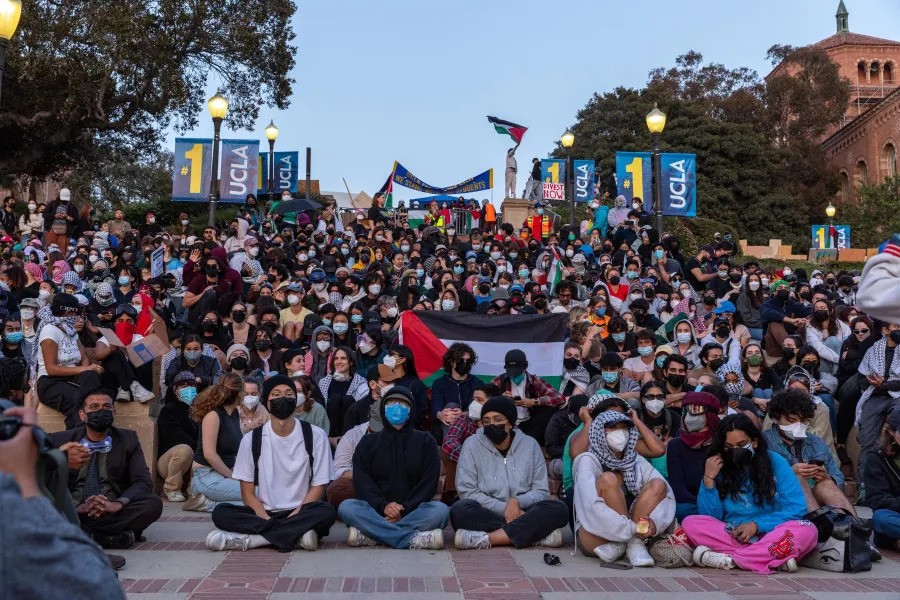加州大学洛杉矶分校声援加沙营地. 图片:Grace Yoon/Anadolu/Getty Images.