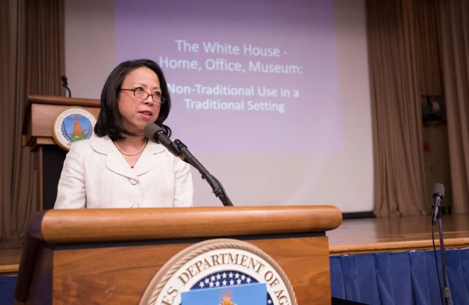 唐娜·林·史密斯在美国农业部亚裔美国人和太平洋岛民遗产月上发表演讲,2016. 图片:Steve Thompson/USDA/Flickr.