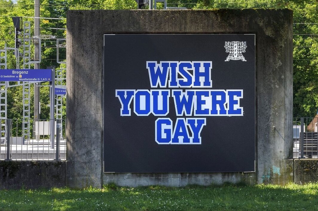 安妮·伊姆霍夫“希望你是同性恋”广告牌,奥地利布雷根茨. 图片:Anne Imhof.