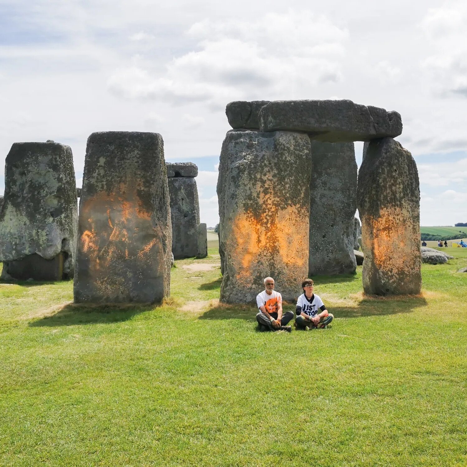 6月19日,两名与环保行动团体“停止石油”(Just Stop Oil)相关的抗议者在将英国巨石阵喷成橙色后被捕。21岁的尼姆·林奇(Niamh Lynch)目前是牛津大学的一名学生,73岁的拉詹·奈杜(Rajan Naidu)来自伯明翰,他们这次行动的目的是向英国下届政府争取“到2030年逐步淘汰化石燃料的具有法律约束力的条约”。这次行动发生在夏至前两天,许多游客会在夏至前后来到巨石阵。此外,英国大选将在7月4日举行。