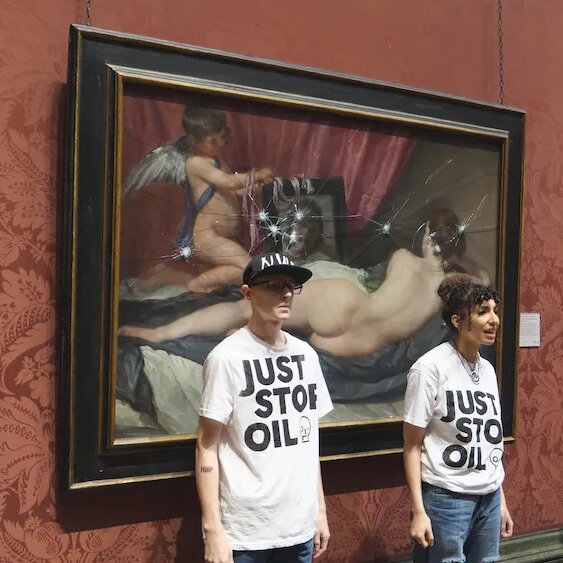 本月早些时候,该组织也曾在佳士得举行了抗议行动,导致一场印象派和现代派纸上作品的拍卖暂停。“灭绝反叛”的目标是推动艺术和文化机构实现碳净零排放。该组织在一份声明中表示,“‘死去的星球上没有博物馆!’是对气候正义的号召。这提出了一个隐含在对我们集体生存的威胁中的哲学问题:在整个世界都处于危险之中的情况下,所有这一切到底是为了什么?我们为什么要举办展览,为什么要有博物馆?”