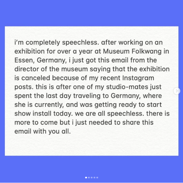 11月18日,生态行动组织“灭绝反叛”(Extinction Rebellion)的成员占领了纽约所罗门·R·古根海姆博物馆盘旋上升的中庭,他们高呼口号、发表演讲,强调博物馆有义务应对气候变化,并交替展示写有“死去的星球上没有艺术”(No Art on a Dead Planet)和“死去的星球上没有艺术家”(No Artists on a Dead Planet)的横幅。活动开始于周六下午5点左右,这是博物馆一周中最繁忙的一天,也是博物馆每周“按意愿付费”时段。博物馆员工基本上没有中断这次行动,一直持续到晚上8点闭馆后,拒绝离馆的抗议者才被逮捕。