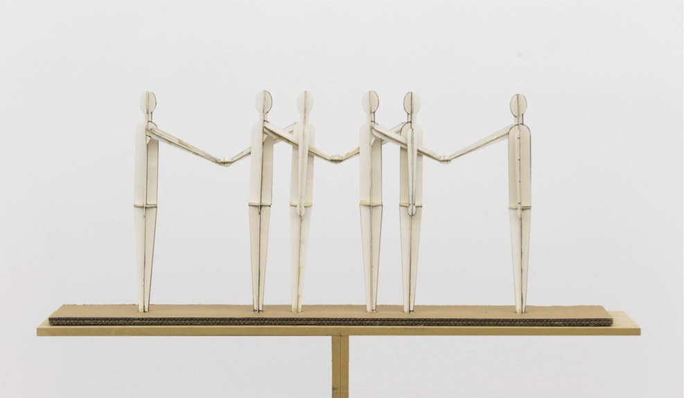 王鲁炎,《穿越间隔的间隔者》,2017,白卡纸、瓦楞纸板、马克笔板,43 x 102.5 x 20 cm.