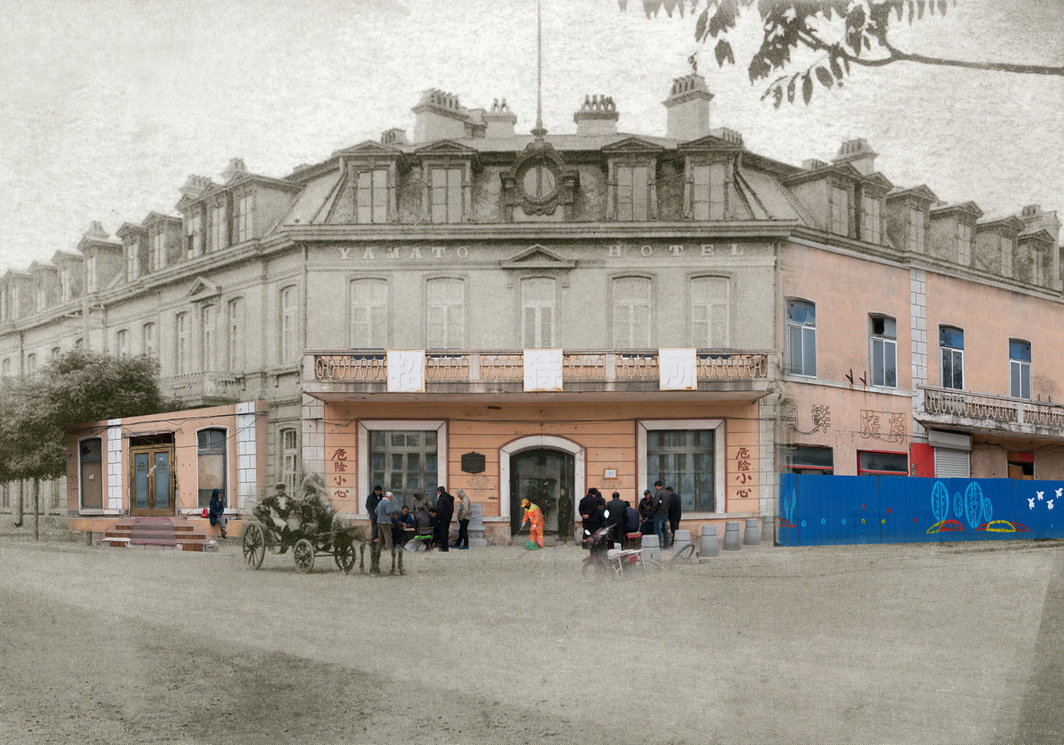 我盯着那张历经时间消磨、如蜕皮般更换着“皮肤”的建筑照片看了许久,照片中的像素好似以还魂的气势卷土重来,成为图像中一个不稳定的叙事因子。你很难想象这样一间略显落寞的招待所正是1931年那位末代皇帝溥仪曾下榻过的大和旅馆,正于此处进行休闲活动的现代人仿佛与夜不能寐的历史来客们就这么不期而遇了。