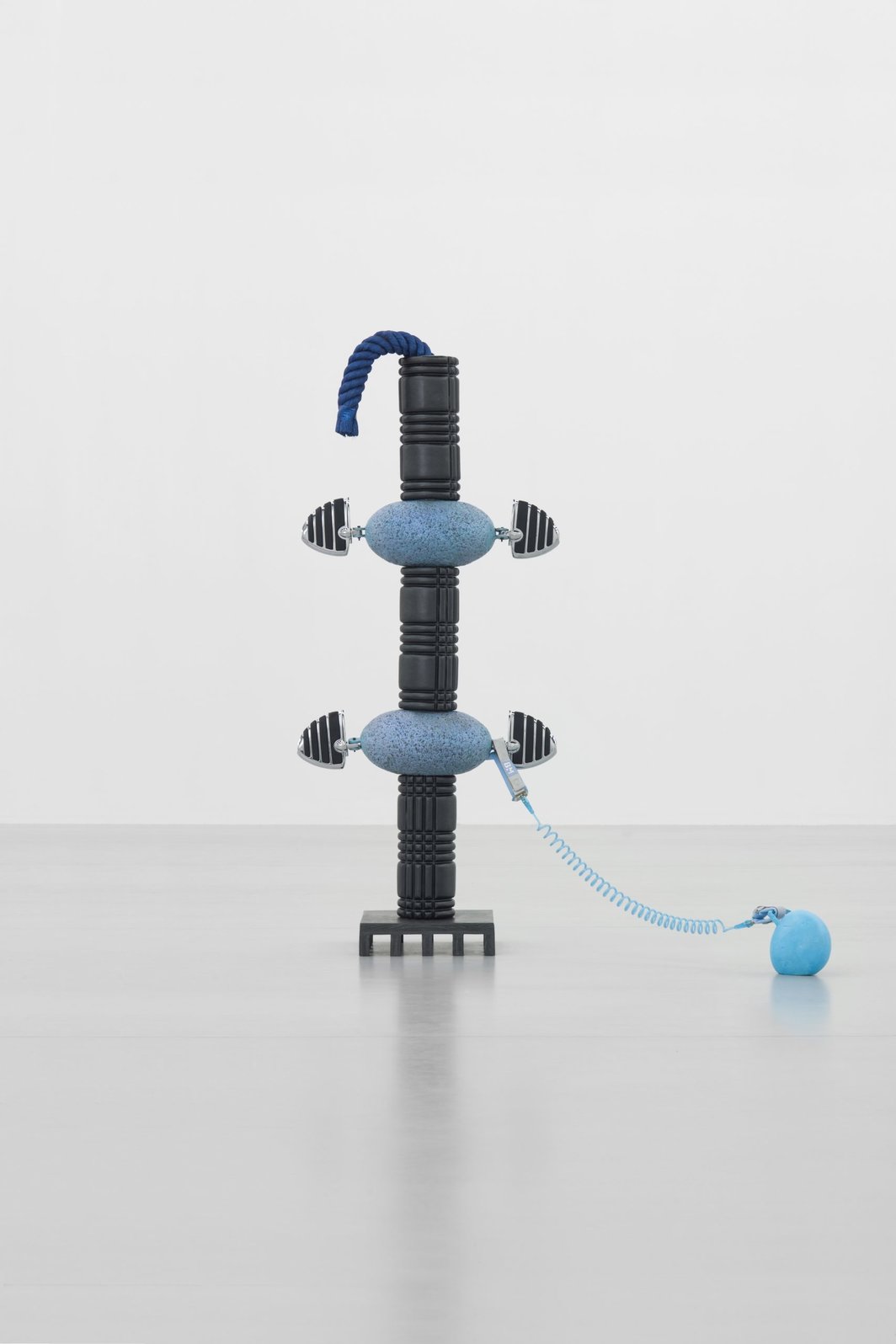 关小,《爱抚师》,2020,青铜,丙烯烘烤,丙烯手工着色,摩托车零件,麻绳,螺旋线,65 x 30 x 165 cm.