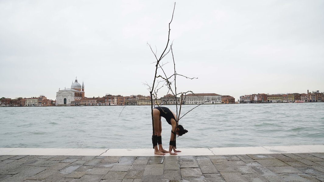 童文敏,《爬行》,2018-2019,行为,实施地点:日本、德国、意大利、中国,三频录像,彩色,有声.