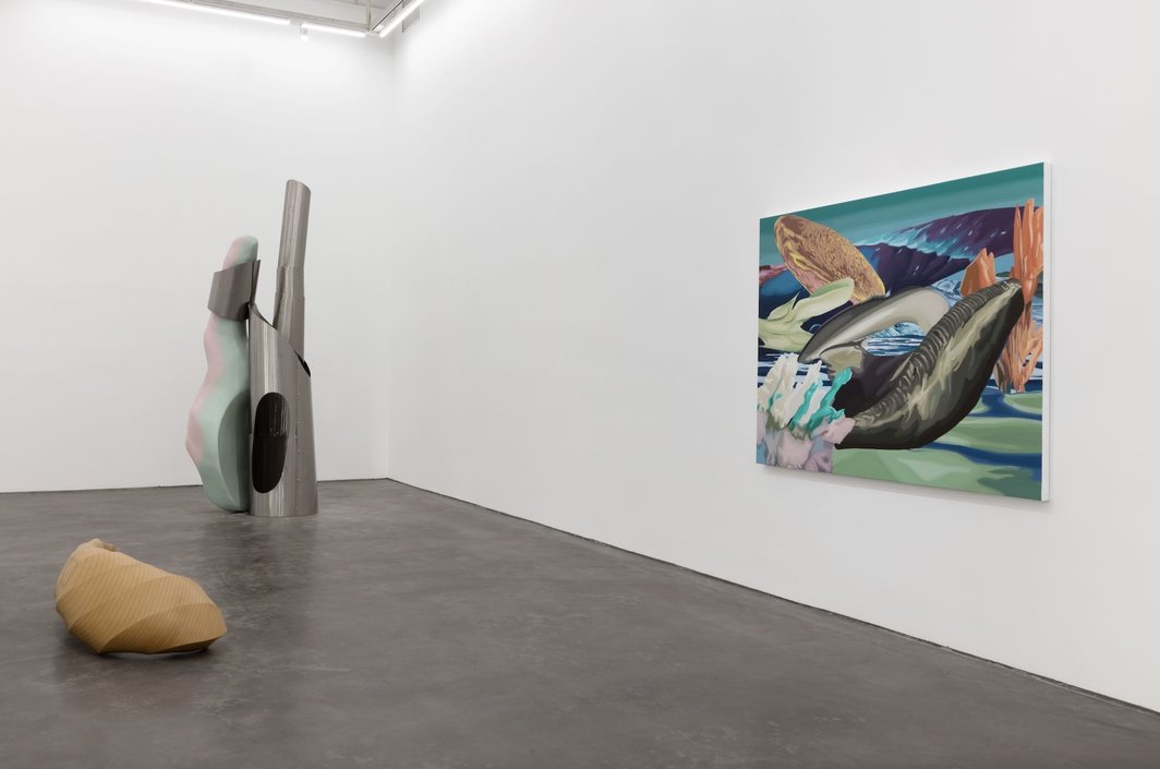 有趣的是,这场旨在反常识的展览,现场并没有让人感觉过度异常。相反,或独立或靠墙放置的雕塑以及穿插其间的油画作品尽管外形上有时令人联想到动物骨骼、器官或海洋生物,但总体仍然是低调的,日常的,它们并没有从正面挑战观众对当代艺术的预设。汪建伟的工作让我想到莱布尼茨的单子(monade),它们并非主体意识所关联的对象,而是对象对潜在的微知觉(petites perceptions)的开发。在微知觉的开发过程中,艺术家不停遭遇到“如何打破固有习惯”的问题,并在重复克服问题的过程里积累了突破惯性的潜能。然后,在突破的那一刻,一个简单的物就可能瓦解一贯思维的局限,所以这注定是一个非整全的过程,它生生不息地让物思维和活动起来。正如丙烯决定了雕塑的意义,因为只有丙烯让打磨得光滑的作品的颜色不再具备“光泽”(今天人们已经非常习惯消费当代艺术品的光泽表皮);又比如包裹在有机生物形体外的刚硬的金属外壳,如同嫁接在失去某些器官功能的人身上的义肢,它们与身体并不互相抵触、矛盾和否定,金属也能参与生命的成长,有机和无机物之间的二元对立被打破。当关联主义习惯以主体意识否定事物,使得人们不能察觉事物的微细差异时,汪建伟的作品却尝试开发新的微知觉,使得我们重新察觉具备思维和生命的“物”。