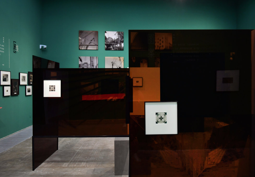 此外,骆伯年捕捉底层民众生活状态的纪实摄影也在展览中有所呈现:蹬水车的农民,专注劳作的老手艺人,撒网的渔民,跪在河边石头上浣洗的妇人等……这些反映二十世纪早期乡间生活风貌的作品,也是本次展览中最具人文关怀精神的视觉记录。与之相对,摄影师镜头下的城市建筑、轮船的局部构造、工人作业的塔吊则指向了另一条影响路径,即进门右手大展厅展墙文字所示的“摩登派”。文字旁边是骆伯年的成名作《汲瓮》(1932)。创作者通过暗房技术布置的画面,以及另一些图形拼贴和静物摄影,如《构图》(1930年代),都令人联想到同时代欧洲前卫艺术中利用照相机镜头的机械特征所表现的肉眼不可见的世界。这种“风格与题材上的杂糅及多样化”是骆伯年在摄影技术和艺术上的“出现代”探索。展览将“出现代”翻译成Emerging Modernity,“出”有“出现”之意,但考虑到从抗战到内战的过程中,这些“业余”摄影师活动的都市文化空间逐步被挤压,到最终丧失,我们似乎也可以将“出”理解为“出走”或“离开”。出走之后各人的选择和命运迥异,而“现代”亦成为有待定义之词,我们不妨将其视为此次展览埋下的伏笔。