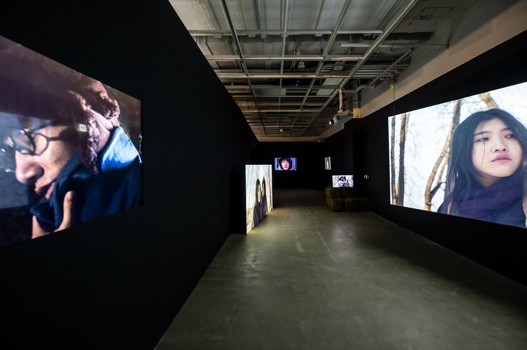 许多参展作品关注民族国家间的纠葛和帝国主义殖民史的残留与发酵,处处可见醒目的暴力,也使展览整体充满了厚重的史诗感,如一部东亚的《奥德赛》。李继忠与伊佐治雄悟(Isaji Yugo)合作的影像装置《虚无乡远》(2020-21)以日本占领伪满洲时期被迫迁徙的日籍难民为原型,用虚构再现的方式尝试触碰历史苦难。幽暗、狭长的空间中,多屏影像随情节依次启动,牵引观众踏上共情的流离之路。杨圆圆的《大连幻景》(2017-)和镰田友介(Kamata Yusuke)的《日式住宅》(2016-2021)均以拼贴为主要手段,对城市、建筑与人的关系有着相似的关注。它们被巧妙地置于同一展厅,展厅中间悬挂的投影幕上正反两面同时播放着两位艺术家的影像作品,彼此呼应的空间设计形象地隐喻了这一话题在东亚內外不同時空中多面向的历史性展开。朱骏腾在台北社子岛驻地半年的成果《河鳗》(2021)以逐个升高的三屏影像装置形式展出,分别对应从非生产性到生产性的祭祀、拾荒和劳作三重线索,透露出东亚现代性背后特殊的历史基线。王懿泉的裝置《祖国的花朵》和影像《非常私人》(2022)将有关绢花工艺的历史研究与个人经验相结合,克制地回顾了中国近现代史中个人与集体之间晦暗不明的情感关系。何锐安的《Lining》(2021)以纪录片采访对谈的冷峻风格开启了他回顾香港百年纺织工业变迁的三部曲之一,将香港锚定在全球资本主义运作的关系谱系中。相对应的,王博的新作《九龙东往事》(2021)在史料的基础上,以跳跃离奇的想象,虚构了关于头发贸易和冷战、殖民史的东亚奇幻鬼故事,用一种荒诞的幽默感回击荒诞的现实。