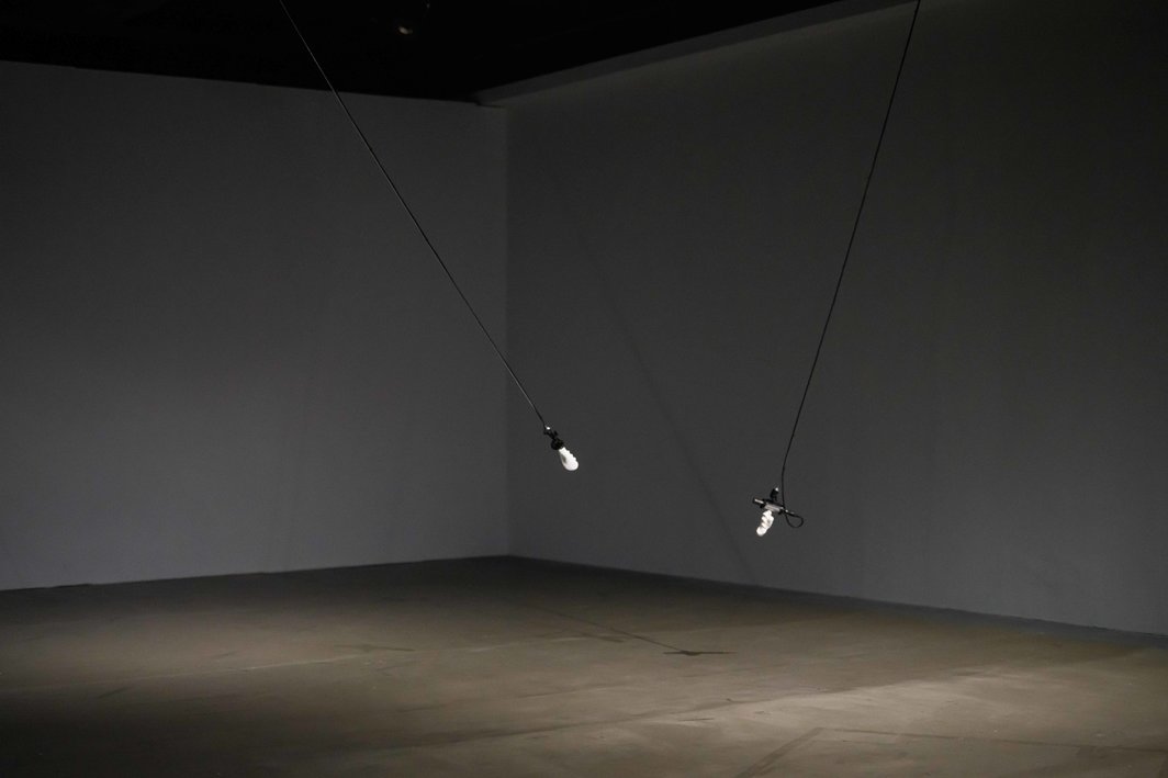 互动声音装置《你说的话》(2022)为三座以钢索垂吊,白色手拓印雕塑托起的麦克风(艺术家自述为手持武器的意象),在展场中央摆荡:观者身体以及机器的牵制时时改变着它们的路径。降b音符、撞球、救护车、秋千、浪潮,这些N手声音无法透过具体事物形容。艺术家的计划是音效越来越嘈杂以及高频,机器与人的对峙引导观众聆听,三座麦克风的摆荡越来越猖狂,几乎要击中观者;三者间的向量运动也影响了各自的收音,在回放混音的过程中重新创造现场。唯一的听众(我本人)的身体变成展场的核心,而刚离开的观众身体介入了现场,他们的“此曾在”被再度录制,被机器“编曲”并回放,我在现场的踱步也被机器撷取碎片并重组,以新的面貌演绎给未来踏进展间的观众,原始音景与人/非人的过去现在未来拉扯,运动牵制声音,而声音并不引导运动。
