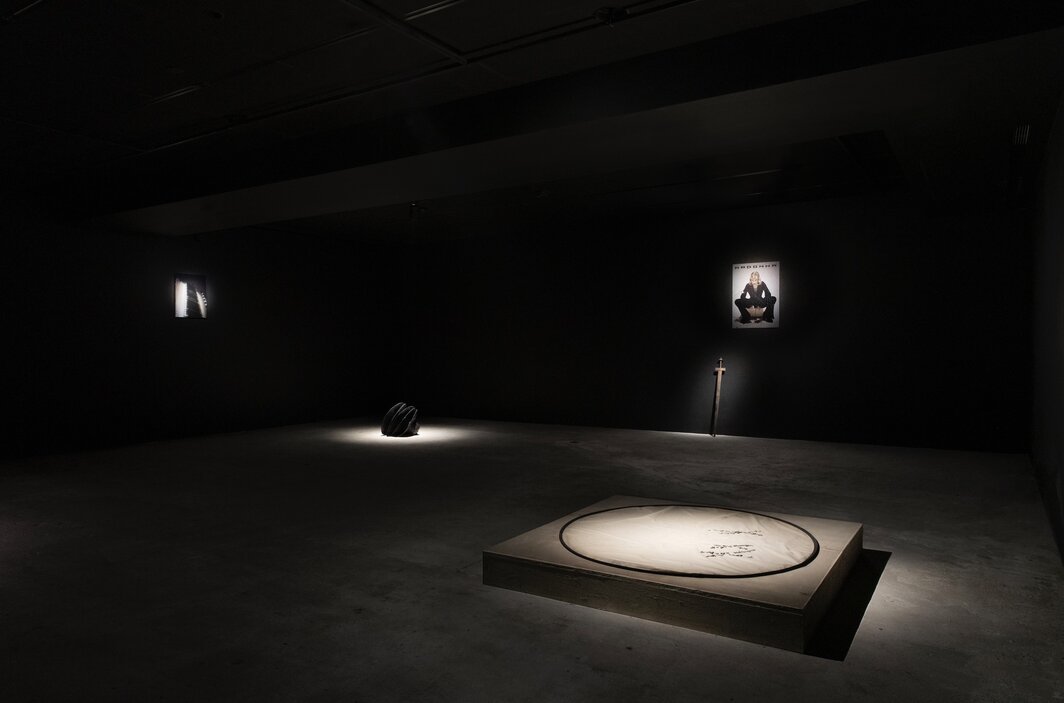 无论是尸体袋、非洲古剑,还是被涂黑的草帽、PVC管和浸满机油的衣服,展出作品的许多原材料都是网络购得的现成物,或是身边废弃物的改造品。这些与身体保持微妙联系,但又始终被“剩余”所标记的物似乎试图在一片荒废的景观中恢复某种人类的历史性主体,并介入更广泛的公共情感讨论,但同时又是疲惫的、退弃的,是对后福特式劳动和耗费的背反,也是互联网算法驱动的欲望机器所决定的放任流动,令人联想到马克·费舍(Mark Fisher)所说的在无止境的重复中必然走向的“对未来的取消”。这种矛盾的心态与疏离的情绪除了与信息科技异化下的后人类状况有关,也部分带有时代和地区的独特历史创伤症状。
