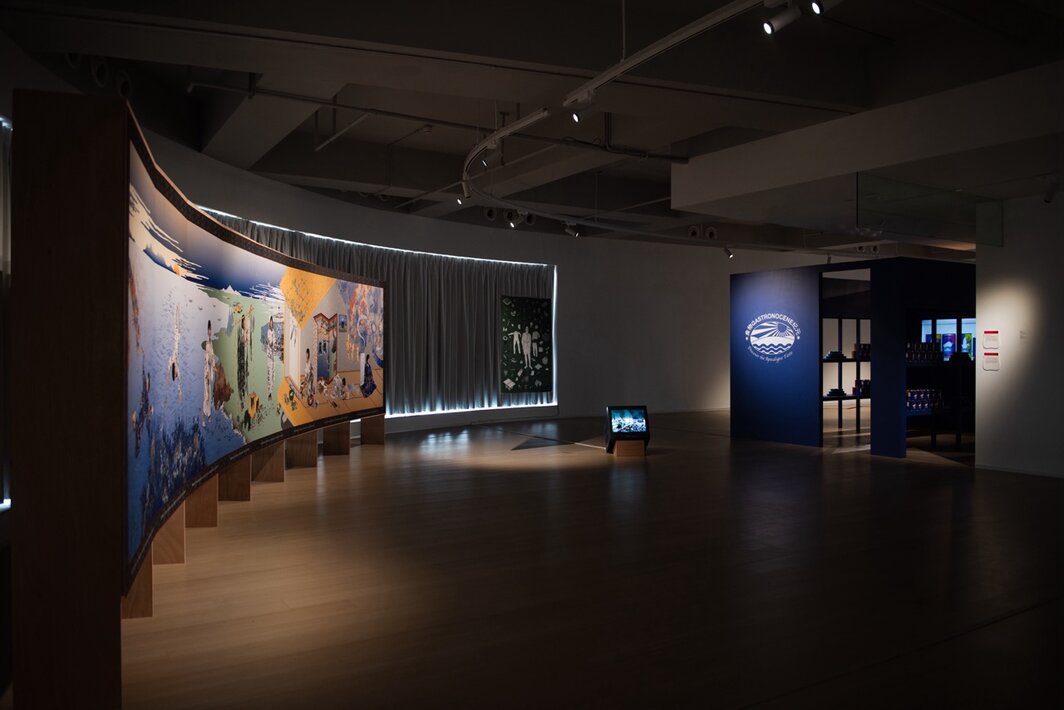 “偏食”展览现场,2026. 左:Map office,《海女的故事》,2018;右:Elia Nurvista,《食物纪元》,2021. 图片提供:弘美术馆.