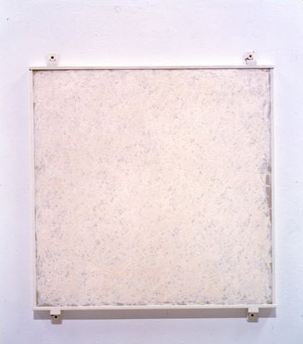 罗伯特•莱曼、《Painting with Steel 15 1/8 x 13 5/ 8》、1978、纸上油画棒、上圆栓的白色钢框、38x 35cm。