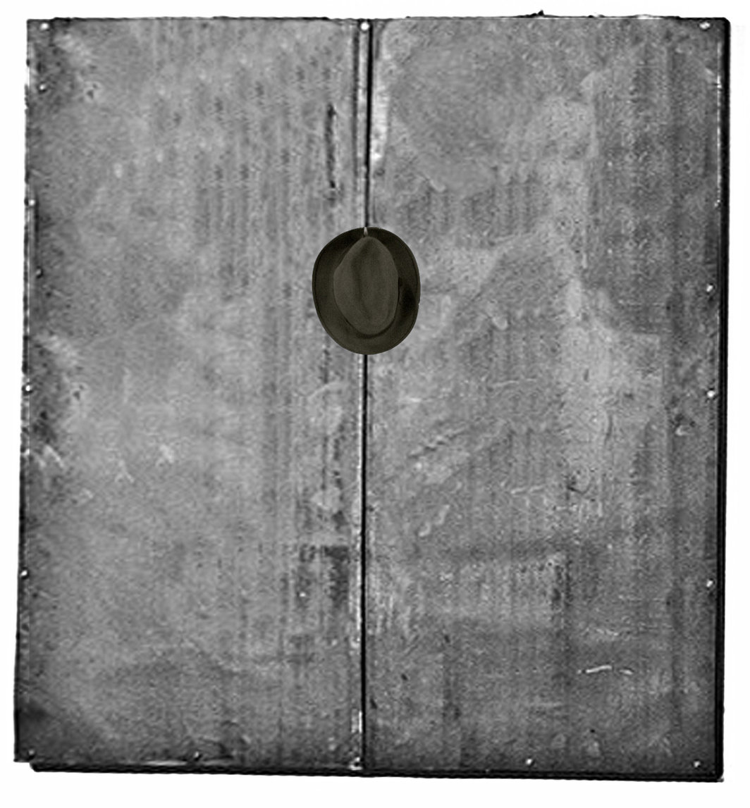雅尼斯•库奈里斯,《无题》,2011,铁板,铅,铁钩,帽子,200x180x20cm。
