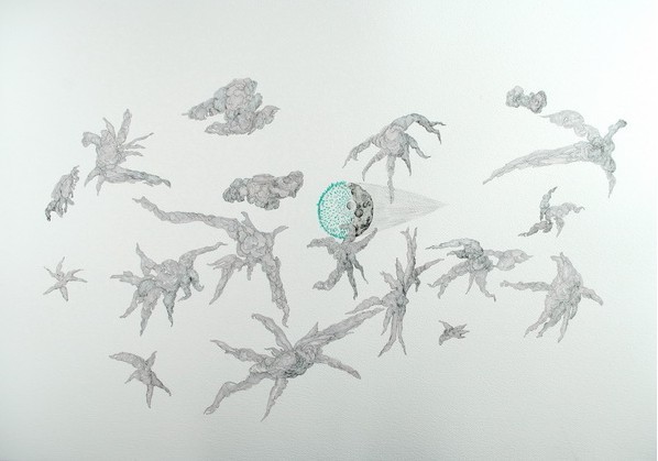 陈熹,《彗星 A》 , 2011,针管笔, 马克笔, Fabriano水彩纸, 70 X 100cm。