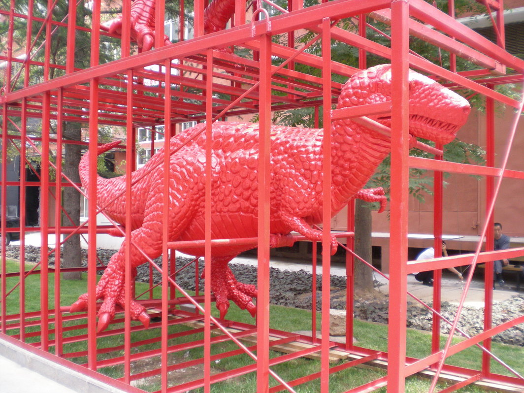 这场展览最不缺乏的就是大牌艺术家以及他们的代表作品。从展览海报上印制的蔡国强、方力钧、谷文达、邱志杰、王广义、张晓刚等等中国当代艺术界重量级的人物,到摆放在咖啡馆、前厅的由林明宏、艾未未、颜磊等人分别应邀制作的名为“超级风水”的委托创作,再到UCCA门口摆放着的隋建国的大恐龙《中国制造》,使得观众们仿佛被这些闪着“金光”的姓名和作品“耀花了眼”。确实,这些经常出现在书本、媒体中的姓名和作品让观众们容易产生这样的感觉——“看,这个也是被他们买走的”。相当一部分观众在看到作品时表现的非常激动和兴奋,毕竟,大规模看到这些非常有价值的藏品的机会非常不多得。