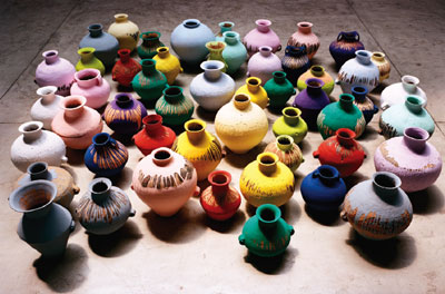当时的北京,什么都刚刚才开始有点儿动静。三十六岁的艾未未和父母住在一起,为了打发无聊的日子,每天都往古玩市场跑。在回国后的种种不适中,他的第一个古代现成品作品诞生了:1994年,他给汉代古瓮画上可口可乐的标志,向建立一套完整的表达/语言体系迈出了第一步,这套体系的基础是对中国辉煌历史遗留下来的物品进行交替的破坏和重建,历史遗物既构成作品的肌理,也构成背后的理念。1993-2000年的装置《静物》继续了这种早期试验,作品由3600件石器时代工具组成,每件都配上单独说明。1997年以来的一系列作品遵循了同样的主题。在颇具预言性的《碎片》(Fragments)中,最好的明清家具被切割、重组,变得荒诞而且无用。比如,两条桌腿靠在墙上,或者椅子表面倾斜成各种奇怪的角度,让人完全没法坐。这些家具作品和1993-2000年给古瓮刷白色工业用漆的 《洗白》(Whitewash)系列有异曲同工之妙,展现了艺术家如何通过破坏文物来创作当代艺术,同时也让人联想到文化大革命毁坏文物运动中反传统的文化指令,以及九十年代经济迅猛发展造成的损害。
