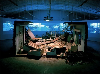 张培力的录像以他广泛、直接的方式解构了中国社会政治现实。在新千年初期创作的作品中,张培力从革命电影里选取若干片段——比如热烈鼓掌的场面——将其重复播放,直到近乎荒唐的程度。我们可以将这一策略与他最近的作品相比较,如2008年的录像装置《阵风》。展厅中间再现了一个被破坏得七零八落的中产阶级家庭,而墙上多屏投影则慢速播放着这个家仍然完好无损时的样子,以及随之而来的狂风如何将其变成了我们在展厅看到的狼藉。张培力的作品在摧垮我们的幻想同时,也纵容我们虚无的梦。