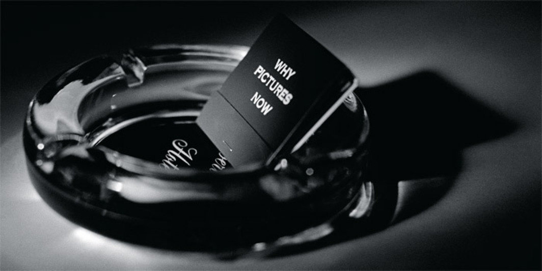 1981年,路易斯·劳勒( Louise Lawler)对着放在一个普通餐厅烟灰缸里的火柴盒拍下一张照片——这张照片想要提出的问题似乎就是印在火柴盒面上的字句:“今日图像何为?”(WHY PICTURES NOW)。约二十年后,这张照片作为尾页出现在劳勒的摄影集《图像编排》( An Arrangement of Pictures,Assouline, 2000)中。毫无疑问,劳勒认为她在1981年提出的这个疑问需要被再次提出。“今日图像何为”这句话的关键在于自问,事实上它问的是“为什么这件作品要以图像的形式呈现?”,以及“为何我——路易斯·劳勒——今日要制作图像?”